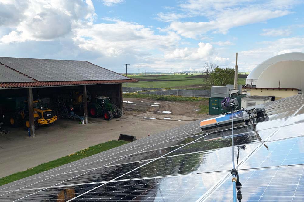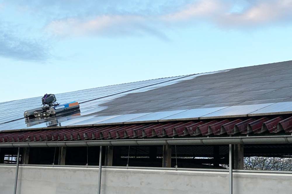 Typische Einsatzbereiche sind Photovoltaikanlagen und Solaranlagen auf landwirtschaftlichen Gebäuden wie Ställen oder Scheunen sowie große Hallendächer mittelständischer Betriebe. In diesen Umgebungen kommt es durch Staub, Emissionen und betriebliche Nutzung oft zu einer überdurchschnittlichen Verschmutzungsbelastung.